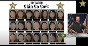 Below, you’ll see the image (we blurred for privacy) from “Operation Skin So Soft”, a raid carried out by the Polk County Sheriff’s Office targeting massage parlors in 2024. We’re including it as an example of how the entire branding of these raids, the names, fonts, and marketing, exposes how unserious, harmful, and dehumanizing these operations actually are. Law enforcement didn’t choose the name to reflect any concern for safety. They chose it to fetishize and mock Asian massage parlor workers. It’s offensive, objectifying, and reveals exactly how police treat migrant sex workers: as sexualized, dehumanized criminals, props, and headlines.